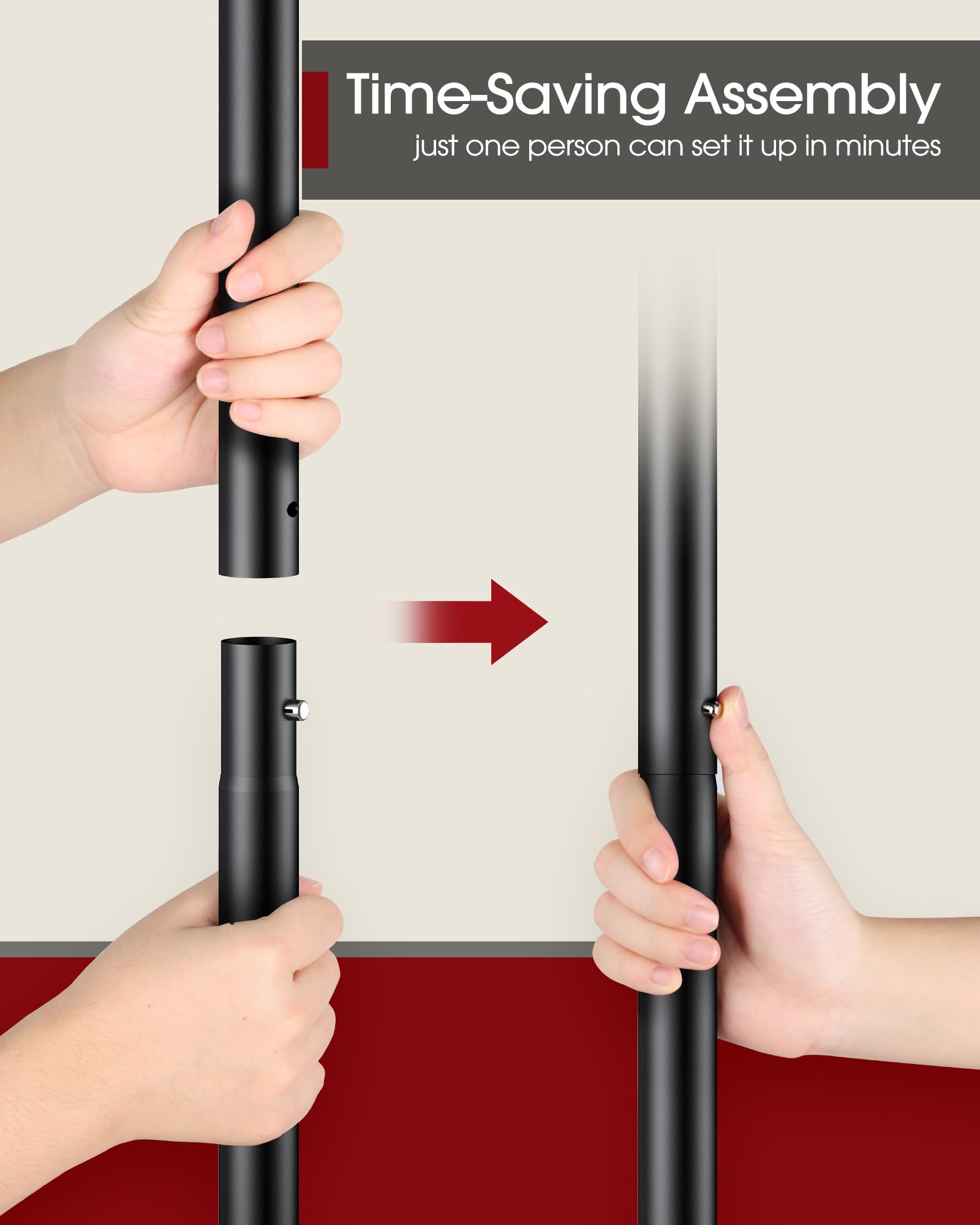 - TIME-SAVING ASSEMBLY: Setting up your garment rack for hanging clothes has never been easier! The straightforward design and clear step-by-step instructions make assembly quick and hassle-free, saving you time and effort. Besides, the anti-slip stoppers on the coat rack ensure your clothes stay securely in place, preventing them from accidentally falling off during use.