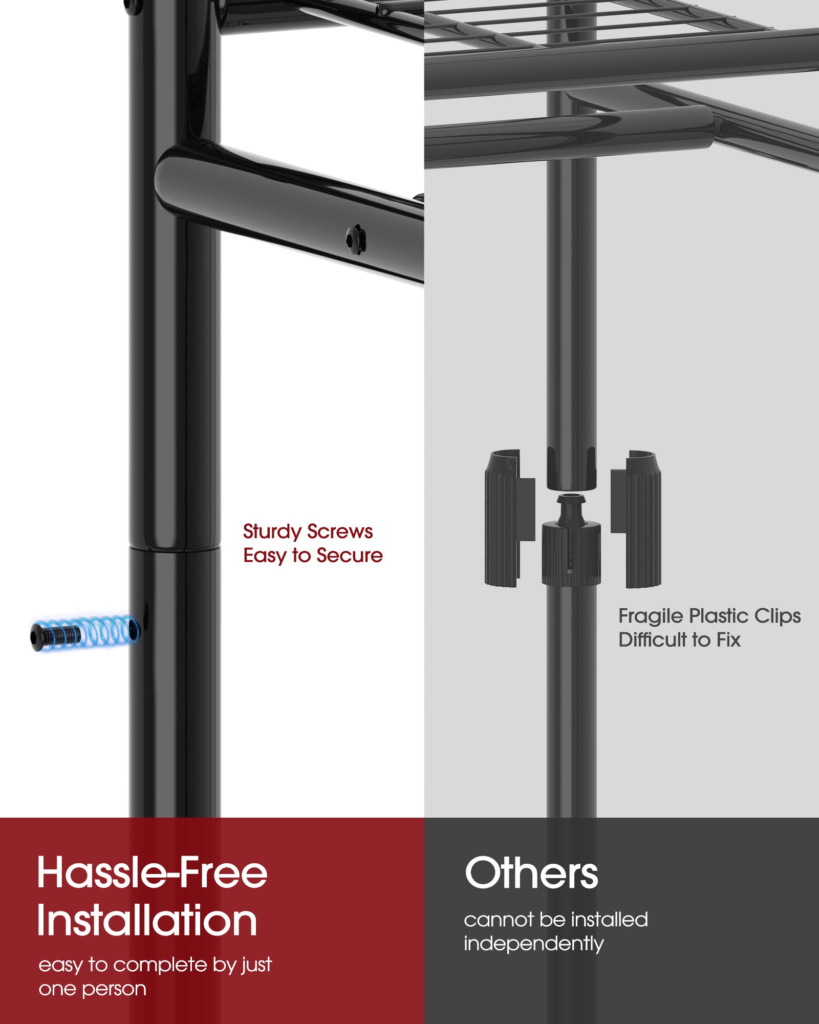 - Strong & Durable: Made of sturdy metal tubes and mesh shelves, the Sakugi rack supports up to 300 lbs without bending, thanks to secure screw connections.