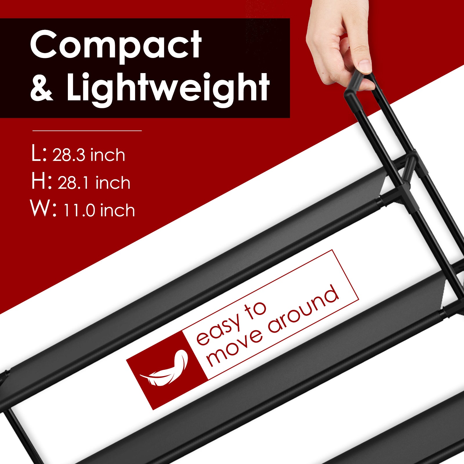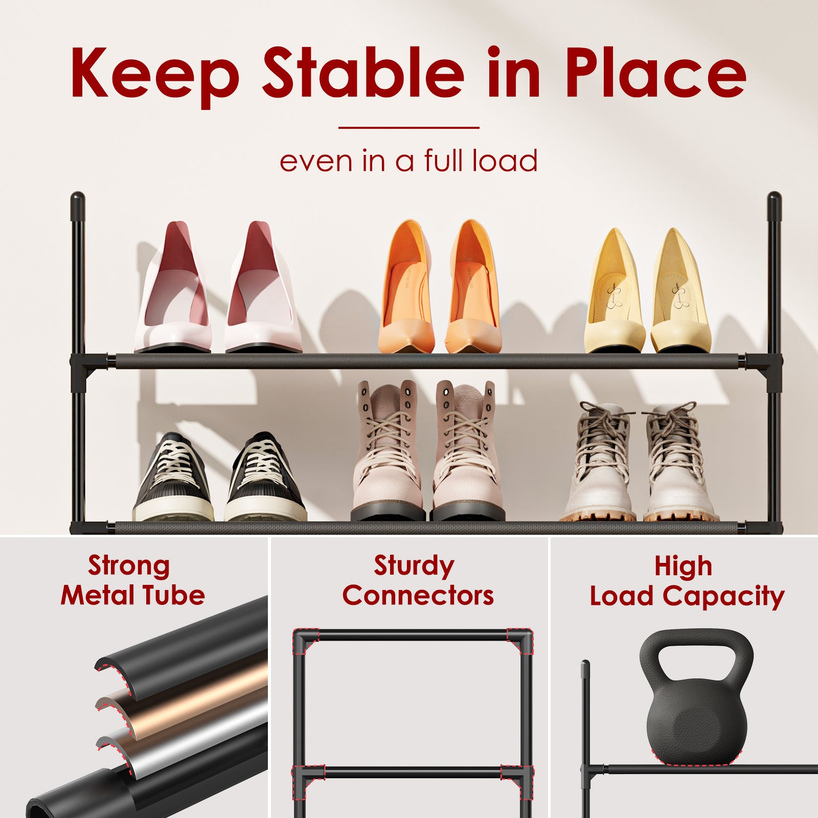 - MULTIFUNCTIONAL ORGANIZER: The compact design of this shoe rack makes it suitable for most areas such as garages, walk-in closets, entryways, and living rooms. This versatile shoe rack for front door entrance maximizes storage potential in tight spaces, helping to keep your home tidy and clutter-free.