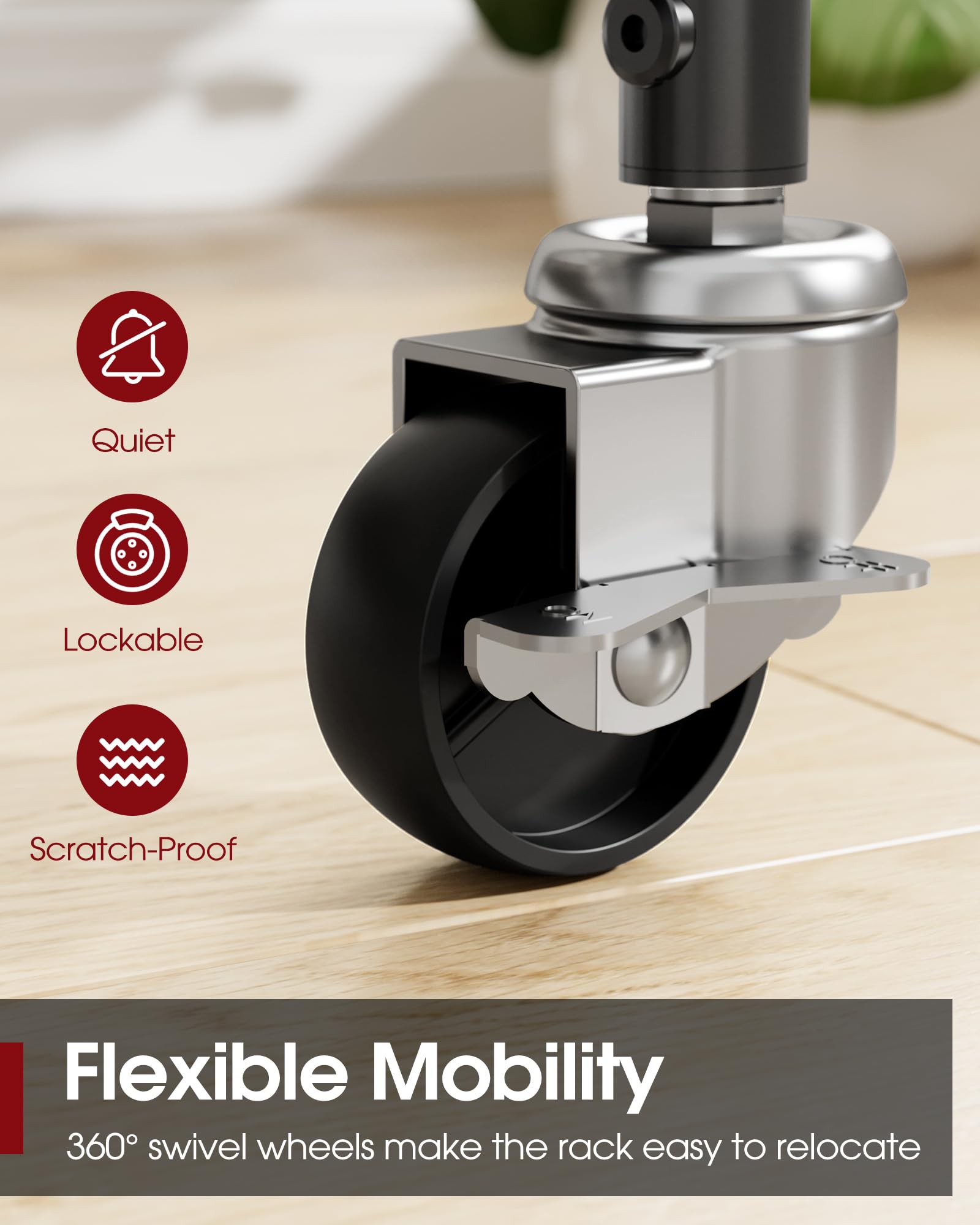 - EASY TO MOVE & SECURE: The portable clothes rack comes with smooth-rolling swivel wheels, allowing quiet movement between rooms. The two locking brakes prevent unwanted sliding or tipping, ensuring secure placement. This design of the closet organizer and storage solution provides easy mobility without disturbing household activities.