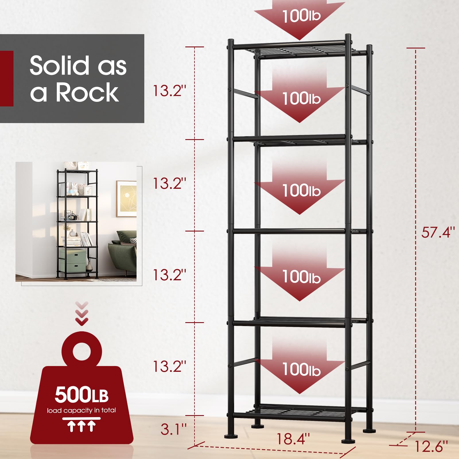 - SPACE-SAVING DESIGN: The Sakugi 5-tier wire shelving unit, with its compact dimensions of 18.4" x 12.6" x 57.4", is designed to maximize vertical space and minimize floor space, making it perfect for small rooms or tight corners. Additionally, these 2-pack metal shelves can be effortlessly combined, offering an adaptable storage solution that expands to accommodate larger spaces or unique layouts.