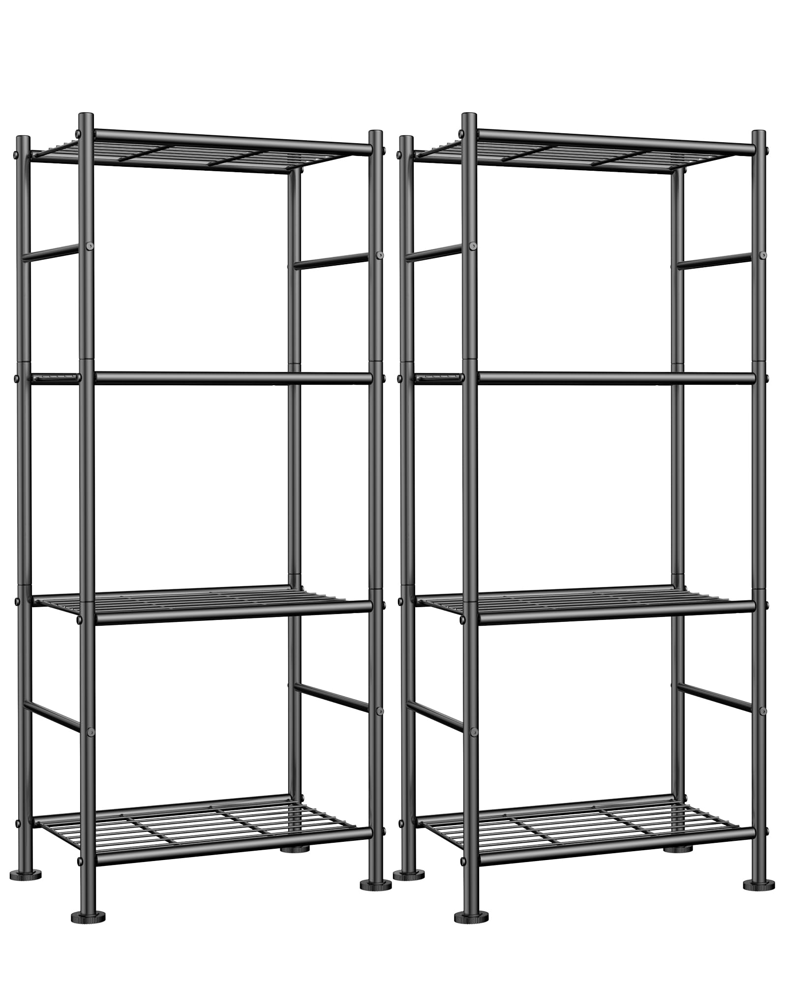 Sakugi Storage Shelves - Set of 2, 5-Tier Metal Shelf Organizer, Space-Saving Garage Shelving with Leveling Feet, Standing Shelves Organizer for Kitchen, Laundry, Pantry (18.4" x 12.6" x 57.4", Black)